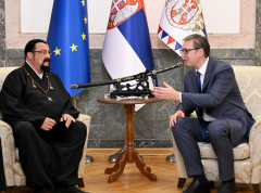 Predsednik Srbije Aleksandar Vučić sastao se danas u Beogradu sa svetski poznatim glumcem, producentom i umetnikom Stivenom Sigalom. Ovaj susret bio je prilika za razgovor o jačanju kulturne i umetničke saradnje između Srbije i međunarodne zajednice. Vučić je istakao značaj promocije Srbije na globalnoj sceni i mogućnosti za zajedničke projekte u oblasti kinematografije i medijskih partnerstava.